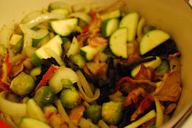 I slowly added the zucchini, Brussels sprouts and back to the pan while repeatedly mixing the vegetables up.