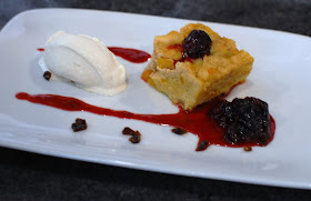 Fall Harvest Bread Pudding with Bacon Brittle and Sour Cream Maple Ice Cream |