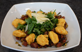 Sweet Potato Gnocchi with Pancetta Chestnut Hash and Arugula Salad |