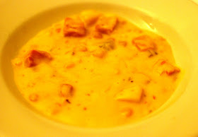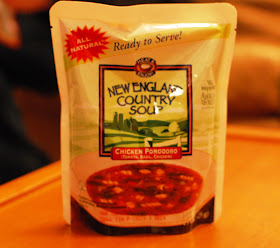 First up, Bret and I tried New England Country Soup's chicken corn chowder. The soup heated up easily in the pouch although I must warn that the packaging is very hot to handle. The chowder wasn't too thick (which I liked) and chock full of corn, potatoes and chicken meat. I loved that the soup had a little bit of a kick to it with their use of cayenne. Bret liked that there was a lot of corn kernels in the soup and that the prevailing flavor to the chowder was actually corn.