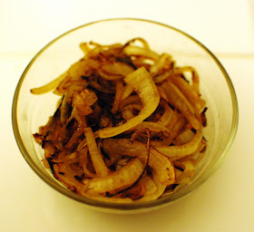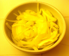 While the turkey and jalapeno pepper was cooking, I quickly sliced up the onion thinly.