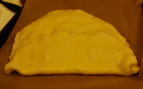 I closed up the calzone, vented it and gave it a quick egg wash.