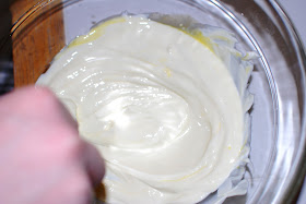 Meanwhile, Bret mixed one egg yolk into 3/4 cup of sour cream.