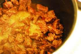 I then warmed up a large sauce pan on the stove with the remaining vegetable oil from the vegetables and added another tablespoon or so of fresh oil to the pan. I added my sirloin tips to the pan and browned them.