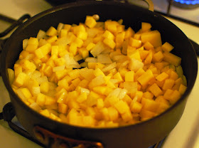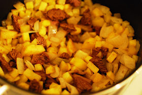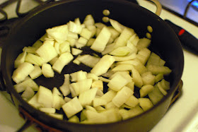 I then warmed up a pan on the stove with a few tablespoons of vegetable oil. I first added the onions and cooked them until they got translucent.