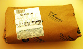 I had purchased a little over a pound of sirloin tips and I cut those down to bite-sized pieces.