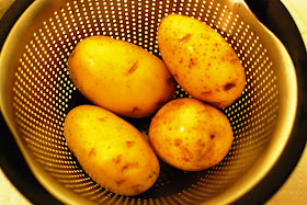 First, I washed, peeled and diced four small potatoes.