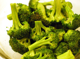 The broccoli was really simple to prepare.  I simple washed a huge head of broccoli and cut all of the florets off.  I also peeled the outer skin of the remaining stem and cut those down to a similar size as the florets.  I tossed the broccoli in a bowl with butter-infused olive oil, garlic powder, salt and pepper.