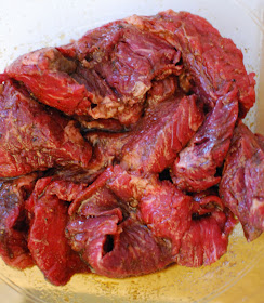 Thankfully Bret volunteered to marinate the steak tips for me since it really grosses me out to deal with raw meat first thing in the morning!
