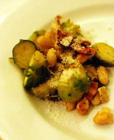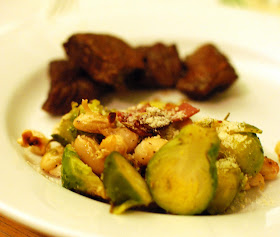 I absolutely loved the roasted Brussels sprouts with bacon and white beans, and it was the perfect side dish to the tender juicy steak tips.