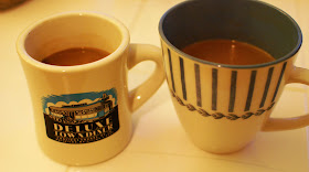I ladled the hot chocolate into two mugs. The left one is Bret's Deluxe Town Diner mug which he loves to use because it reminds him of the days he lived in Watertown after college.