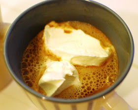 First, I warmed up two cups of fat free milk on the stove. As a sidenote, I found this wonderful saucepan that I haven't used in years! It is probably the remaining piece of cookware from the mismatched set my parents gave me when I started law school and it made me so nostalgic to find it and use it.