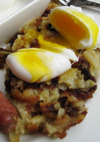 I put my eggs on top of the potato hash and let the egg yolks break on top of the potatoes. Can we just call this the money shot?