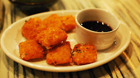 Crispy Fried Manchego Cheese with Spicy Pomegranate Honey Sauce