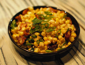 "Creamed" Corn with Bacon, Chiles and Thai Basil