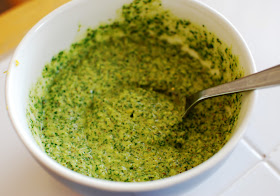 First, I combined all of the ingredients for the marinade except the lemon zest in the food processor.  I pulsed it until smooth and then folded in the lemon zest.