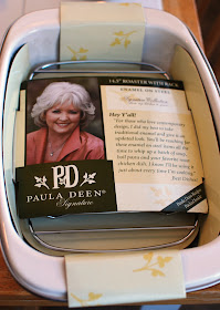 After the chicken marinated for two hours, I pre-heated the oven to 350 degrees.  I placed a small baking pan in the oven to heat up while the oven was pre-heating.  While the oven warmed up, I seasoned the chickens with salt and pepper and placed them in two roasting pans.  One of the roasting pans was this great Paula Deen roasting pan that I purchased from CSN Stores as the winner of Evan's giveaway.