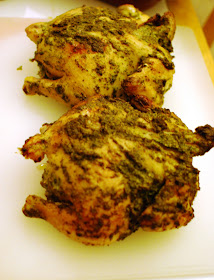 I rubbed them all over with the marinade, covered them and let them sit in the fridge for two hours.