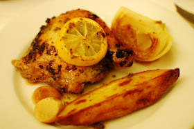 This was definitely an intensive recipe.  It took about four hours from making the marinade to finally sit down and eat dinner.  But it was worth the time and effort.  It was pretty close to the flavors of Gordon Hamersley's version - from the crispy chicken skin, moist chicken meat, crispy potatoes, roasted garlic and lemon undertones.