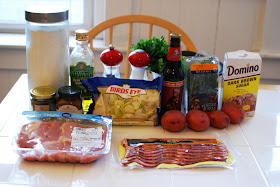 First, I gathered my ingredients. I stuck pretty closely to the recipe although I did alter the amounts of some of the ingredients a bit: