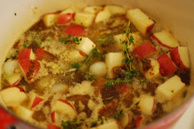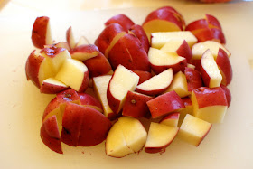 - 1 pound small red-skinned potatoes, cut in chunks (the original recipe calls for 1/2 pound small red-skinned new potatoes, halved)