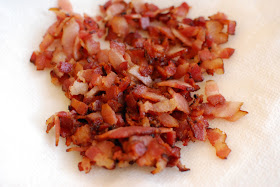I removed the bacon from the pan with a slotted spoon and transferred them to a paper towel-lined paper plate.