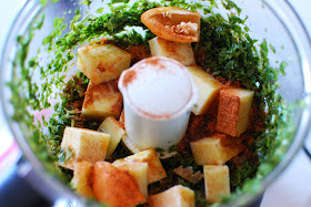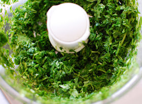 I put the cilantro in the food processor and pulsed until the cilantro turned into a thick grainy paste.