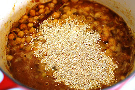 I had about a half cup of quinoa leftover and thought it would make a great addition to the chickpea curry. I added the quinoa to the pan and gave everything a stir.