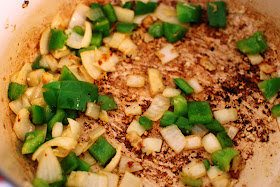 I then got to work on the vegetables and roughly chopped up the onion and green pepper.