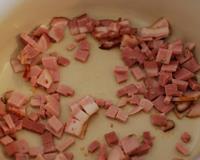 I then sliced the bacon into bite-sized pieces and cubed the ham.