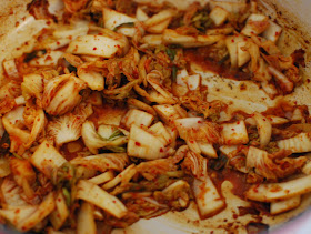 Next, I cut up the kimchi into bite-sized pieces and also set this aside.