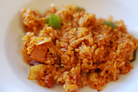 one variation of Korean fried rice on this blog. But when my mom gave me a jar of her most recent batch of kimchi last week, I had a strong urge to make kimchi fried rice. Now, I have my own method of making kimchi fried rice but I came across this recipe for