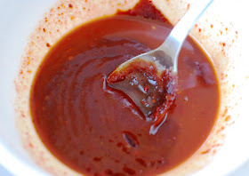 Finally, I mixed the gochujang, sugar and hot water together until the sugar had dissolved and the gochujang had thinned a little. I added the kimchi juice to this bowl and gave it a stir.