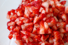 I started by hulling and dicing the strawberries.  I put the strawberries in a medium bowl.