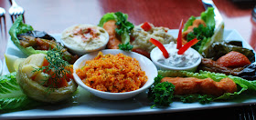 This was a fun way to start our meal because there were so many little bites to try. Some of these went well on their own but others we spread on pita bread. My personal favorites were the artichoke salad, red lentil patties (which were eaten in lettuce wraps), and the stuffed grape leaves.