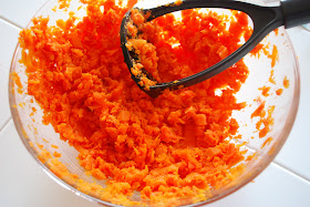 When the forty minutes were done, I mashed the carrots using a hand potato masher.