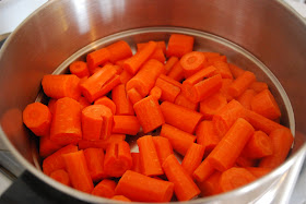 I started out by gathering my ingredients. I used two pounds of carrots instead of the suggested one and a half pounds so I increased the measurements on some of the other ingredients: