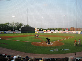 Life can't be all work and no play. Last night, my firm had a really fun outing to the Lowell Spinners baseball game. For those of you who don't know, the Lowell Spinners is one of the Red Sox minor league teams. I went to a few games in the past since I grew up down the street from the park, but I haven't been to one of these games in a long time! We started the evening off with unlimited barbecue in the Gator Pit. And then we watched the game from fantastic seats right behind home plate! With a stadium this small, there really is no bad seat in the house!