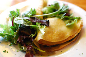 For our entrees, I opted for the Crepes Gourmandes Aux Champignons. This savory crepe was filled with wild mushroom, scallions and creme fraiche. Honestly, this was the best crepe I've had in quite some time. The crepe was light and spongy but it could still hold the savory filling well.