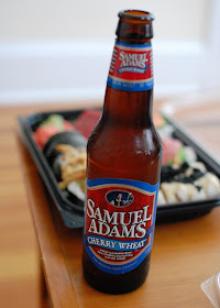 We ordered quite a spread of sushi. The hot weather had us craving a cold fruity beer so I picked up some Samuel Adams Cherry Wheat beer to help wash down the sushi.