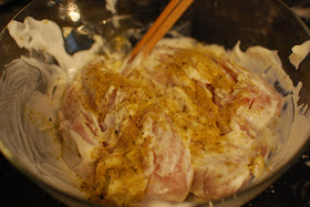 After reading Kerstin's blog this morning, I knew that I wanted to use Greek yogurt in the marinade. I marinated the chicken breasts with salt, pepper, Greek yogurt and the dry rub.