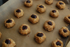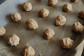 I rolled two tablespoons of dough into a ball and lined the dough balls on a parchment-lined baking sheet.  I left about two inches of space in between the dough balls.