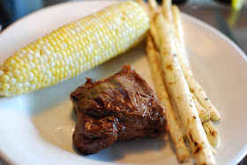 We ate a lot of take-out and meals out this past weekend, but we finally cooked our first meal together tonight. Bret was really excited to use our new grill. He grilled up some steaks and white asparagus while I boiled some corn and made sriracha butter. If Bret wants to grill every night while I boil some water, I'm more than happy to oblige!