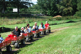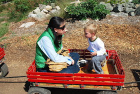 Last Sunday, Bret and I finally had his sister and her family over to our place for lunch. I was a little embarrassed that we've been living in Andover for about a month and a half and they still haven't seen the place! We had a simple lunch of marinated, grilled chicken and salad. We all ate light because we were making room for dessert - apple cider donuts at Smolak Farms! You see, last weekend, Smolak Farms held their weekend Apple Festival. It sounded like a super kid-friendly event so we thought it would be great for our nephew Noah. There were lots of kid-friendly activities, including a hay-ride, and it was a wonderful way to spend a Sunday afternoon.