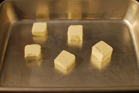 I preheated the oven to 350 degrees. Placed the 1/3 cup butter in a rectangular baking pan.