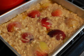 I spooned the batter into the pan and spread it evenly over the apple halves. Some of the apple halves were still exposed and some of the butter mixture came to the surface.