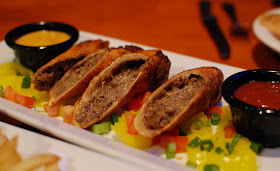 Our second appetizer was the Philly Steak Rolls, which were ridiculously addictive. We both loved the spicy ketchup and queso that came with the rolls.