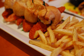 We started the evening by splitting a few appetizers for dinner. One of the dishes was the Buffalo Bar Chicks, which were four mini buffalo chicken sliders and fries.