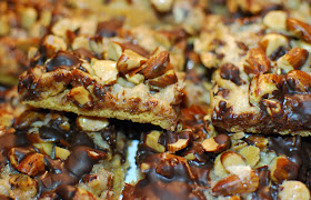 When I asked my mom what she wanted me to make for Christmas dinner, she asked me to bake some cookies to go along with her other dessert dishes.  I had just baked nine dozen cookies the weekend before so I wasn't exactly thrilled with this assignment.  I did perk up pretty quickly when I realized that it gave me an excuse to make super decadent Salted Toffee-Chocolate Squares, which I had clipped from Everyday Food in May of 2010.